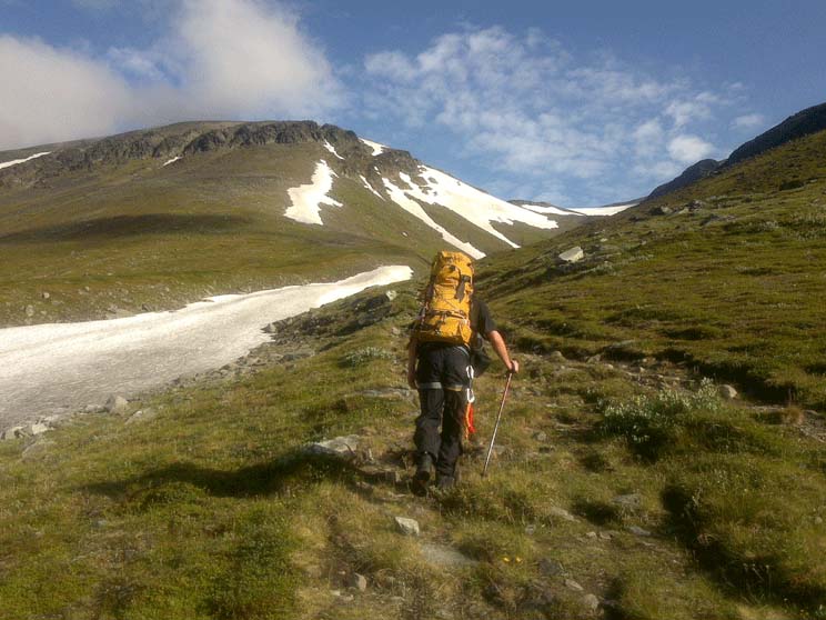 Tiistaina aamusta lähdimme liikkeelle vähän ennen kello 08:a. Lähtkorkeus Ladtjovaggen laaksossa oli 600 metriä. Etenimme Jökelbäckenin notkoa pitkin ylöspäin.
