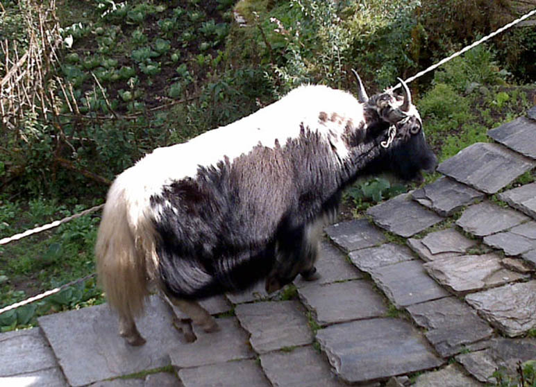 Yak Jakki, muhkeankokoinen härkä. Tulossa olevana Tihar-juhlapäivänä (Valon juhla) siitä tulee monta liha-ateriaa. Naaras on "nak".