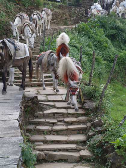 Tavarankuljetus on vuoristossa järjestetty pääasiallisesti aaseilla. Osa 21 aasista jätti kantamukset Landbrukiin, osa jatkoi eteenpäin.
